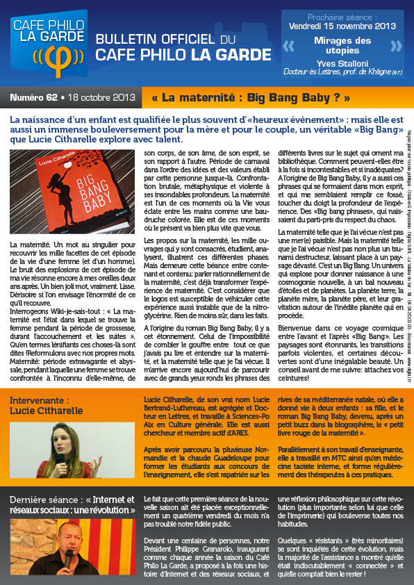 La philosophie est-elle la meilleure voie pour être heureux ? Ou faut-il s’éloigner de la philosophie autant que des religions pour atteindre le bonheur ? Nous tenterons d’y répondre ce soir au Café Philo pour cette dernière séance de l’année 2013.